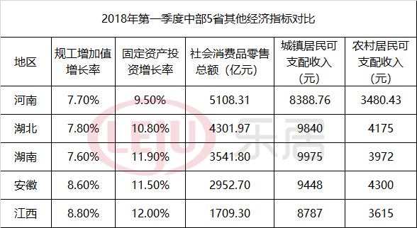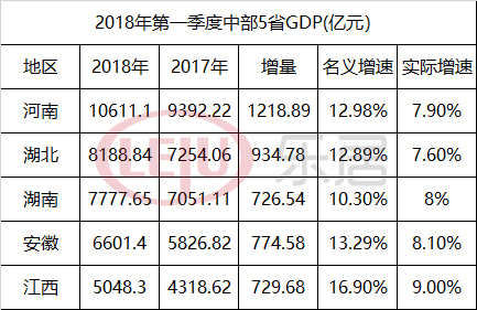 近日,河南、湖北、湖南、安徽、江西五省統(tǒng)計局在其官方網(wǎng)站上公布了2018年一季度各省的經(jīng)濟數(shù)據(jù)。樂居江西梳理匯總后,數(shù)據(jù)如下: