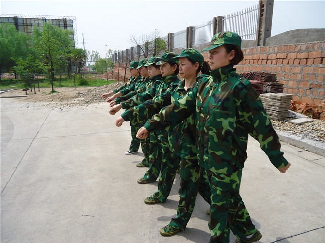整齊的穿著,嘹亮的口號,她們喊出了力量,喊出了氣魄?!耙欢弧欢弧鄙韵ⅰ⒘⒄?、走正步、站軍姿……大家就這樣在教官的指揮下一遍又一遍地操練著。即便是這樣單調(diào)枯燥的訓(xùn)練,對于習(xí)慣了坐在舒適干凈的辦公室里的她們來說也是艱苦的??墒撬齻儧]有抱怨,沒有放棄,依舊堅持訓(xùn)練著,她們已經(jīng)學(xué)到了人生最寶貴的東西——不拋棄,不放棄。