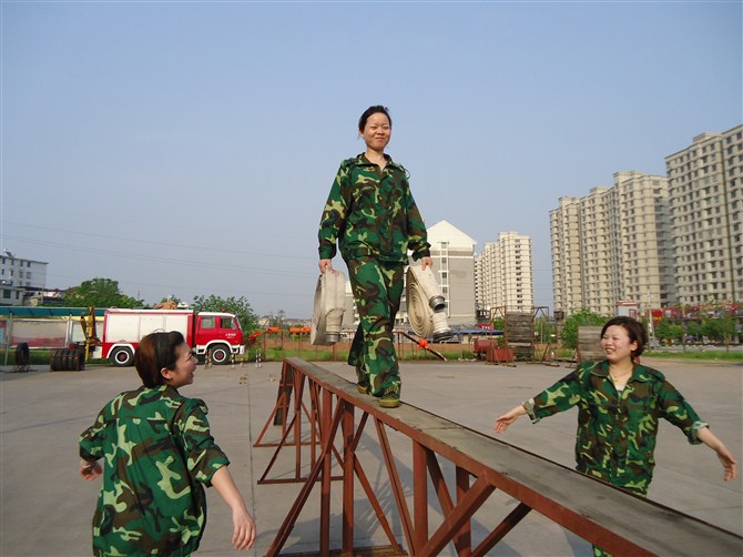 訓(xùn)練期間,教官還安排了體能訓(xùn)練,攀爬消防梯、背重物登樓梯、拉輪胎等等。從拉輪胎的活動中,讓她們切身體會到了團(tuán)隊力量的重要性,一個人的力量是渺小的,一群人的力量才是強大的。之后,還進(jìn)行著不同項目的體能訓(xùn)練,拿水帶過獨木橋,增強她們平衡能力;攀巖,提高她們的身體素質(zhì)及心理素質(zhì)。