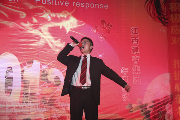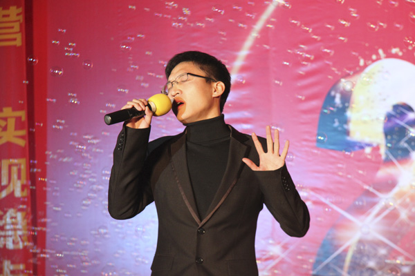 接下來(lái),總部阮勇奉上了獨(dú)唱《等待》。這是一首由著名男歌手韓磊原唱的歌曲。“我既然曾經(jīng)擁有,我的愛(ài)就不想停頓。每個(gè)夢(mèng)里,都有你的夢(mèng),共同期待一個(gè)永恒的春天?!鳖H有明星范的阮勇,以他那渾厚而富有磁性的歌喉征服了觀眾,大漢王朝輝煌的業(yè)績(jī)也似乎定格在了歌中“永恒”兩字上??磥?lái),建亨“韓磊第二”非他莫屬了。