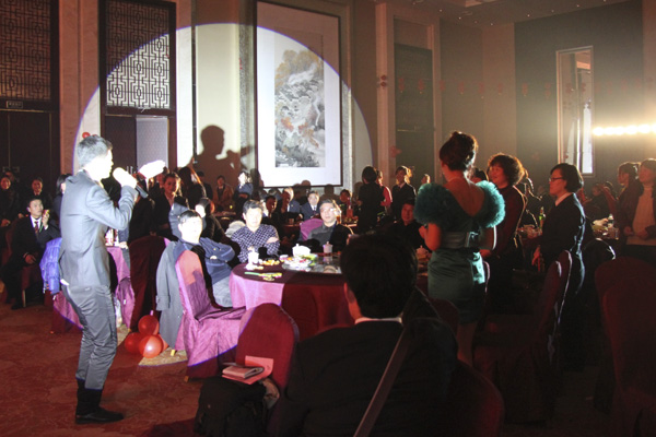 晚會(huì)下半場(chǎng)中場(chǎng)時(shí)間,葉健冬主持了互動(dòng)游戲《心中的美女》。你心中的美女是什么樣的形象?現(xiàn)場(chǎng)觀眾涌躍發(fā)言,當(dāng)主持人請(qǐng)集團(tuán)姜董事長(zhǎng)回答這個(gè)問(wèn)題時(shí),姜董笑著回答說(shuō),他心中的美女是無(wú)形的,美女不可以美色而論。姜董的回答雖然含蓄卻充滿哲理,令聞?wù)邉?dòng)容。