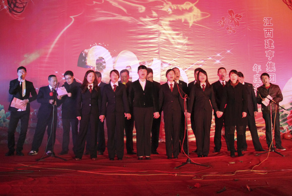 2012年2月4日晚7時(shí),上饒市龍?zhí)逗e館,一場(chǎng)由建亨集團(tuán)員工自編自導(dǎo)自演的文藝晚會(huì)精彩上演。集團(tuán)人力資源部副經(jīng)理兼行政辦公室副主任柯詩(shī)達(dá)、順泰置業(yè)公司辦公室主任陳麗萍、鄱陽(yáng)分公司副總經(jīng)理葉健冬、余干分公司副總經(jīng)理占貞貞聯(lián)袂擔(dān)任晚會(huì)主持人。