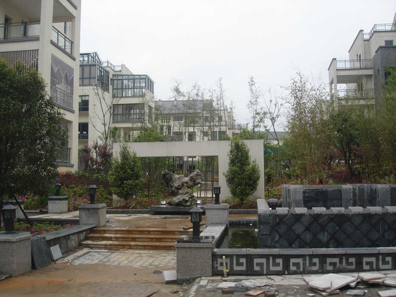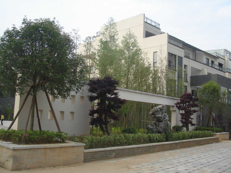 本項目具有現(xiàn)代中式徽派現(xiàn)代生態(tài)園林的特點,主要表現(xiàn)在:一是在營造現(xiàn)代、簡潔的植物空間的同時,又具有濃厚的中國氣息,如本小區(qū)的植物多選擇枝干修長、葉片飄逸、花小色淡的種類為主,如剛竹、垂柳、桂花、梅花、玉蘭、芭蕉、黃馨、菖蒲、鳶尾等,營造簡潔、明凈而極具中國文化意境的植物空間。二是以徽派文化內涵為基本內容,體現(xiàn)徽派文化的底蘊。尤其是以徽派的松、竹、梅、蘭、石為基本素材建園,求得園內構建與園外大環(huán)境的和諧統(tǒng)一,體現(xiàn)中國的傳統(tǒng)文化。如本小區(qū)中種植的五針松、剛竹、臘梅、紅梅、廣玉蘭、紫玉蘭及布置的太湖石、千層石等。三是景觀色彩上采用樸素、典雅的顏色,穿插小量的亮色,通過古樸而不失現(xiàn)代的親和感覺,與徽派建筑外墻的灰、白二色相協(xié)調,低調而內斂,映襯在綠色的背景下顯得清新而淡雅。
