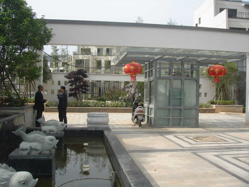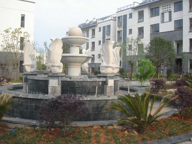 疊水潺潺、綠樹成蔭,景墻前精心挑選的太湖石景石,咋看好似動物嬉戲圖:看!一只羊騎正騎在一頭躺著休息的水牛背上,是那么的親密無間,相親相愛!又有人說,景石像中國地圖等等,此處已成為人們步入小區(qū)后的視覺焦點,每當游人停留在景墻前,一定浮想聯(lián)翩,余味無窮。每當夜幕降臨,水池邊的方形石燈中透出溫馨的燈光,照亮回家的路。