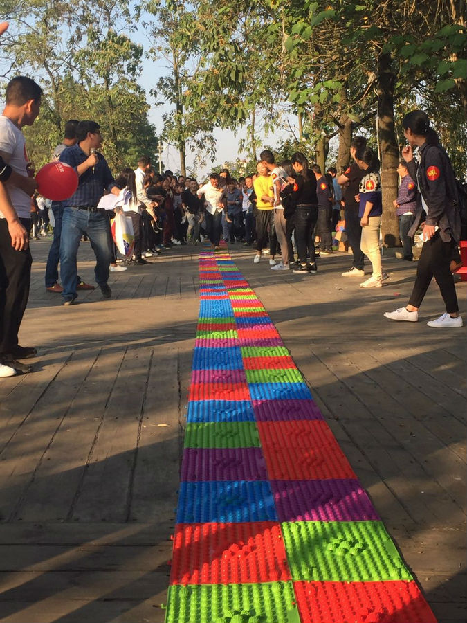 在此次運動會上,共有七個活動項目:珠行千里、螃蟹背西瓜、摸石過河、豬八戒背媳婦、指壓板跳繩、保護女王、拔河。在分完隊選出隊長后,所有隊員興致盎然,爭分奪秒練習比賽項目,認真進行熱身等賽前準備。在豬八戒背媳婦、指壓板跳繩大家更是玩得不亦樂乎。七個項目的比賽異常激烈,參賽隊員一個個精神抖擻,隊友們都隨著比賽加油鼓勵,場面十分熱鬧。整個運動會充滿趣味性,又充滿了挑戰(zhàn)性,工作人員追蹤記錄著比賽進程,拍下了各個精彩的瞬間。