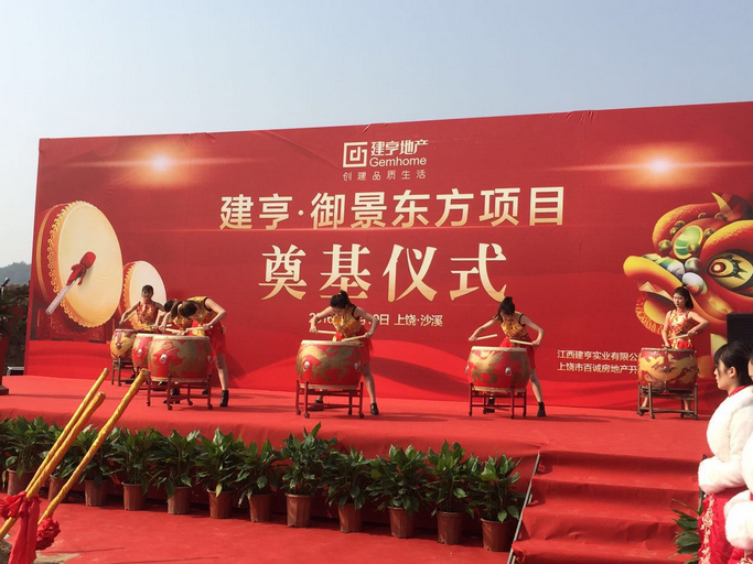 奠基儀式在一場(chǎng)氣勢(shì)盛大的中華龍鼓中拉開(kāi)帷幕,現(xiàn)場(chǎng)主持人一一介紹了蒞臨現(xiàn)場(chǎng)的領(lǐng)導(dǎo)和嘉賓們,建亨集團(tuán)總裁兼上饒市百誠(chéng)房地產(chǎn)開(kāi)發(fā)有限公司董事長(zhǎng)姜光亮先生帶領(lǐng)參加儀式的建亨集團(tuán)高管團(tuán)隊(duì)及上饒市百誠(chéng)房地產(chǎn)開(kāi)發(fā)有限公司主要成員上臺(tái)亮相,并發(fā)表了激情洋溢的講話。