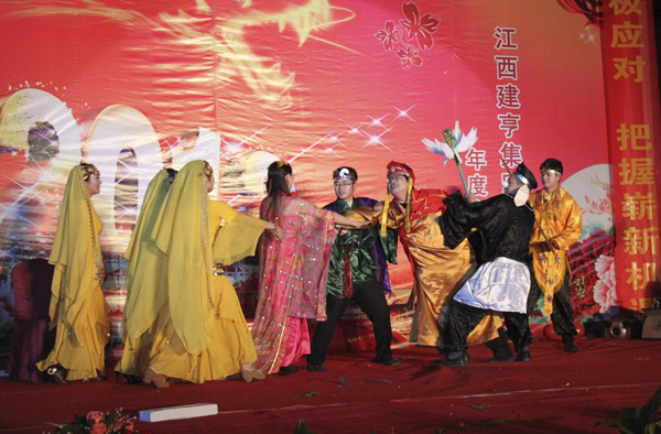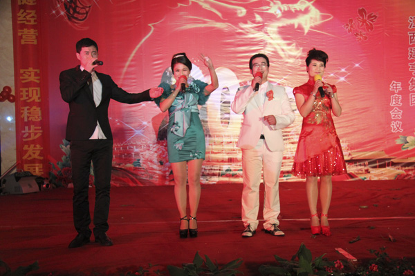 2012年2月4日晚7時(shí),上饒市龍?zhí)逗e館,一場(chǎng)由建亨集團(tuán)員工自編自導(dǎo)自演的文藝晚會(huì)精彩上演。集團(tuán)人力資源部副經(jīng)理兼行政辦公室副主任柯詩(shī)達(dá)、順泰置業(yè)公司辦公室主任陳麗萍、鄱陽(yáng)分公司副總經(jīng)理葉健冬、余干分公司副總經(jīng)理占貞貞聯(lián)袂擔(dān)任晚會(huì)主持人。