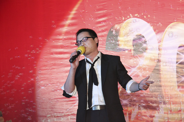 接下來(lái),總部阮勇奉上了獨(dú)唱《等待》。這是一首由著名男歌手韓磊原唱的歌曲。“我既然曾經(jīng)擁有,我的愛(ài)就不想停頓。每個(gè)夢(mèng)里,都有你的夢(mèng),共同期待一個(gè)永恒的春天?!鳖H有明星范的阮勇,以他那渾厚而富有磁性的歌喉征服了觀眾,大漢王朝輝煌的業(yè)績(jī)也似乎定格在了歌中“永恒”兩字上??磥?lái),建亨“韓磊第二”非他莫屬了。