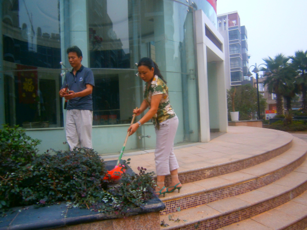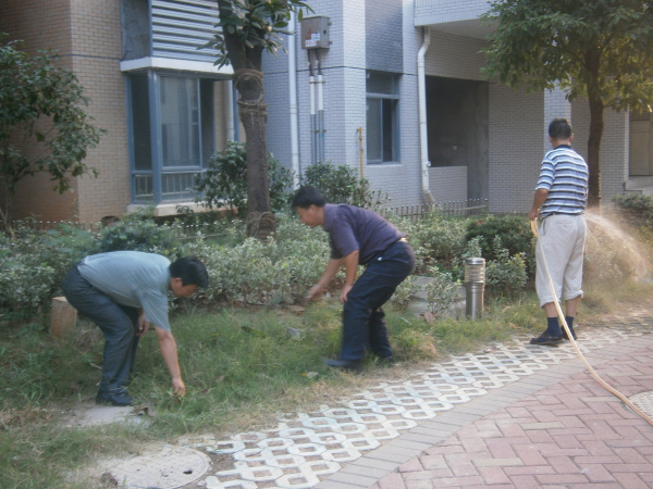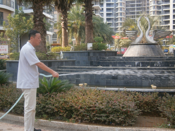 烈日炎炎,酷暑灼灼。天干地燥,大樹葉萎,小草垂頭,鮮花散瓣。湖城領(lǐng)秀小區(qū)的綠化養(yǎng)護工作也進入“緊張”狀態(tài),給綠化員工帶來了極大的工作量及難度。為了保持優(yōu)美的環(huán)境,讓花草正常生長,使業(yè)主們回到小區(qū)有個好心情,鄱陽物業(yè)公司全體員工齊動員,一場小區(qū)園林綠化保衛(wèi)戰(zhàn)全面打響。經(jīng)理身先士卒,以身作則,起到了模范帶頭作用,員工們個個干勁十足,為綠化園地度過炎熱的夏天提供了水份、營養(yǎng)保障。