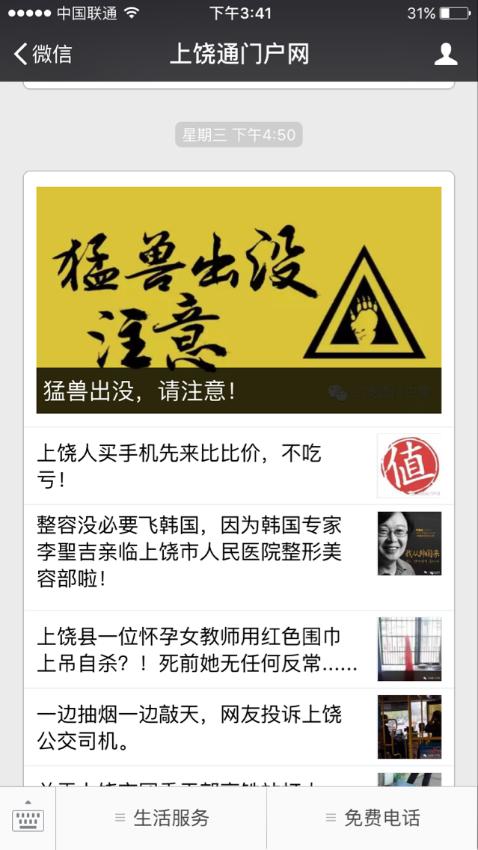 就在小編走訪時(shí),驚聞上饒知名門戶網(wǎng)絡(luò)——上饒通門戶網(wǎng)首頁,上饒房產(chǎn)網(wǎng)首頁,頻現(xiàn)““猛獸來襲,請(qǐng)注意””;此外,微媒體上饒通門戶網(wǎng)大V頭條推送,就連小編的朋友圈都被莫名刷屏,一石激起千層浪!又是如此簡潔的幾句話,又是如此的不解之謎。一時(shí)之間,留言成百上千,猶如驚天迷案般引人猜疑!
