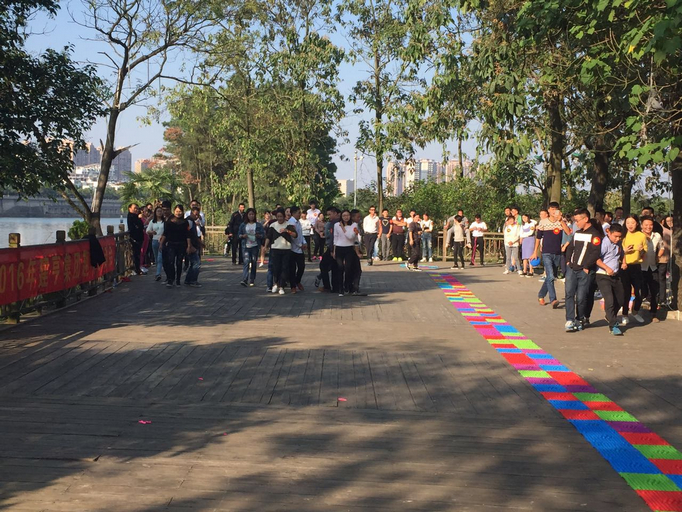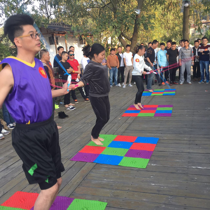 在此次運動會上,共有七個活動項目:珠行千里、螃蟹背西瓜、摸石過河、豬八戒背媳婦、指壓板跳繩、保護女王、拔河。在分完隊選出隊長后,所有隊員興致盎然,爭分奪秒練習比賽項目,認真進行熱身等賽前準備。在豬八戒背媳婦、指壓板跳繩大家更是玩得不亦樂乎。七個項目的比賽異常激烈,參賽隊員一個個精神抖擻,隊友們都隨著比賽加油鼓勵,場面十分熱鬧。整個運動會充滿趣味性,又充滿了挑戰(zhàn)性,工作人員追蹤記錄著比賽進程,拍下了各個精彩的瞬間。