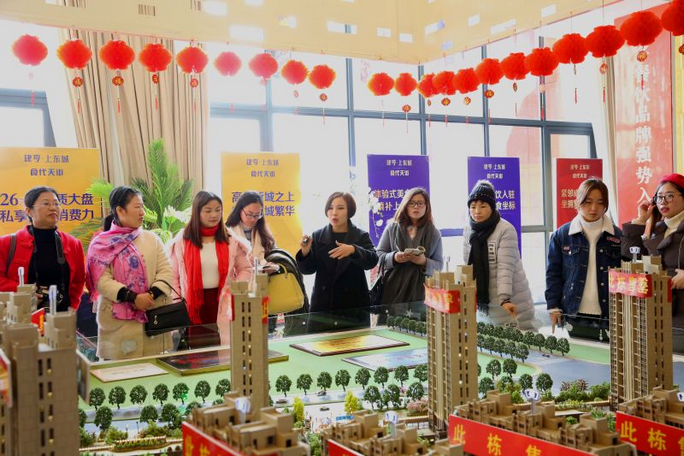 三清媚成員在沙盤區(qū)詳細(xì)了解建亨上東城